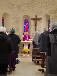 Dans la joie de ce dimanche où nous fêtions la Résurrection, nous avons partagé un festin, réconfortant et joyeux, autour duquel les sœurs et les invités ont pu faire plus ample connaissance. Le traditionnel apéritif, les tables décorées et bien dressées, le menu arrosé de bon vin, les desserts et le café… ont remporté le succès escompté et ont permis d’apporter douceur et paix dans les cœurs, et ainsi, de faire de cette journée un moment de consolation fraternelle pour tous !