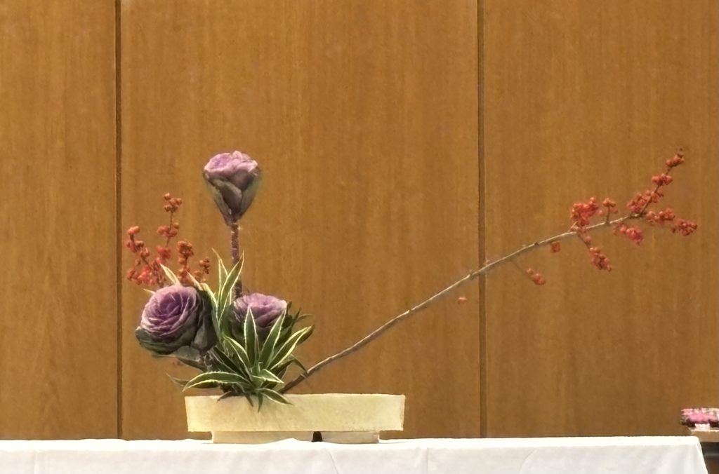 - Nous avons eu la joie de terminer la session par des belles démonstrations florales à travers différentes compositions dont une réalisée par Mme Ikuko Kato de l’école Ohara. L’ikebana s’est invité dans le fleurissement liturgique, comme pour nous rappeler que l’espace et le vide nous parlent du silence, que le mouvement et les lignes sont signes du souffle et de l’énergie et que tout concourt à l’harmonie et à la beauté. »